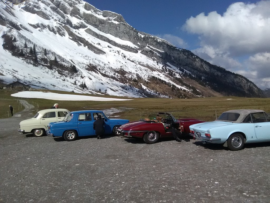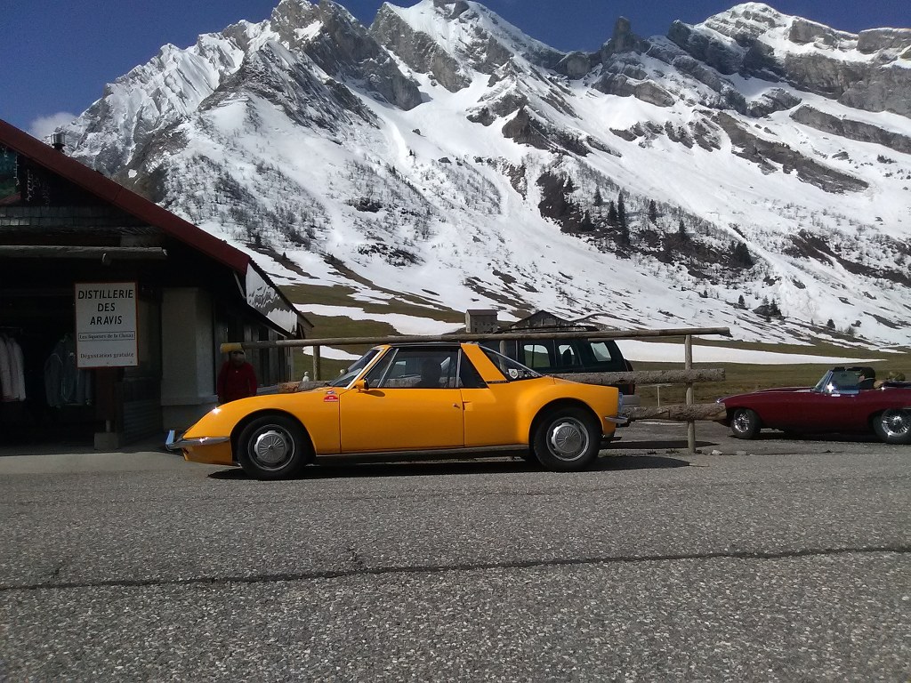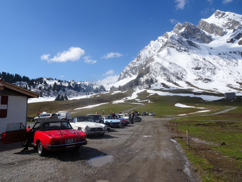Pour commencer, rendez-vous à Toisinges pour le traditionel petit déjeuner, puis direction St Pierre en Faucigny - Petit Bornand, La Clusaz et arrivée au col des Aravis. Les bourrasques de vent sont glaciales, mais le paysage est si beau ! Il y a même des courageux qui ont décapoté.