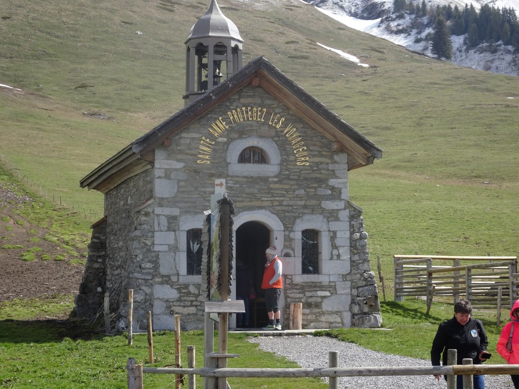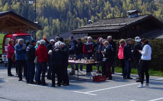 Nous passons de Haute-Savoie en Savoie, et nous nous dirigeons vers Notre Dame de Bellecombe, où un magnifique apéritif nous est offert par la Municipalité et l'Office du Tourisme, servi par Elodie et sa famille.