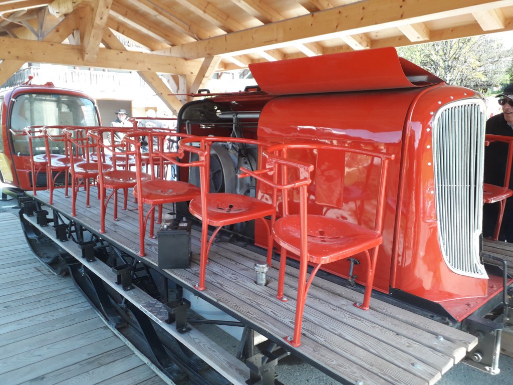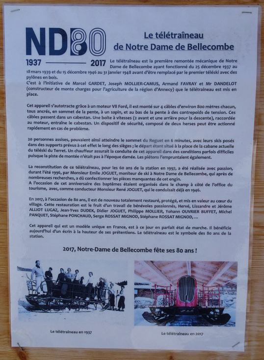 Là nous pouvons contempler l'ancêtre des remontées mécaniques, le "Télétraineau", utilisé dès l'ouverture de la station, en 1937, pour remonter les skieurs au sommet du Reguet, en 6 minutes. Il nous est présenté par les membres de l'association qui l'a restauré.