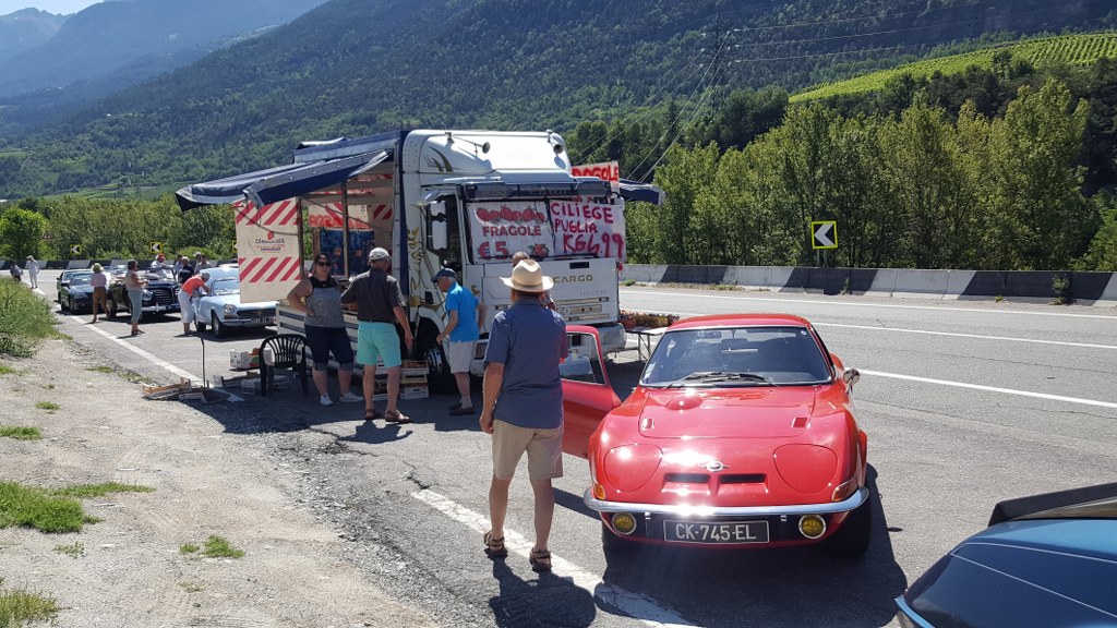 samedi jusqu'à Aoste. Arrêt au bord de la route à nouveau, mais cette fois pour acheter des fruits (cerises, abricots).