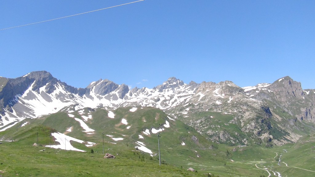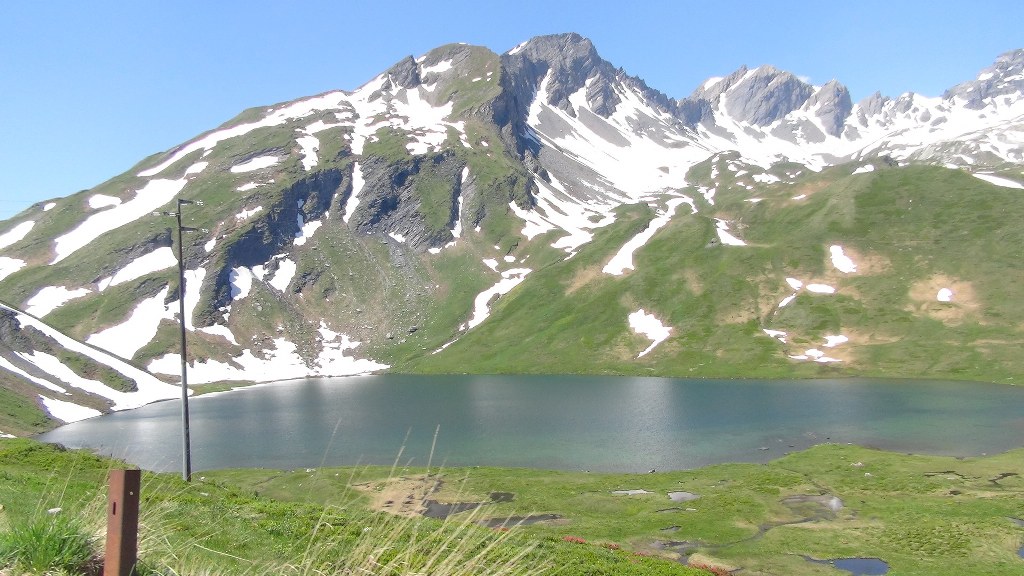 Il passo del Cormet de Roselend (1.968 m) è bellissimo, con il panorama del lago artificiale, ma cominciamo a sentire la stanchezza! È fatale per il nostro amico Coco: il motore della sua auto si scalda; al controllo, risulta che il ventilatore non funziona più. Dopo aver versato 7 litri di acqua nel serbatoio, riparte per scendere almeno fino al ristorante.