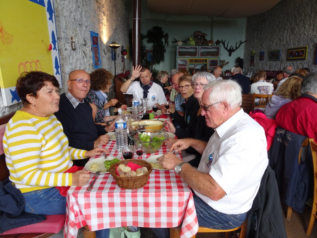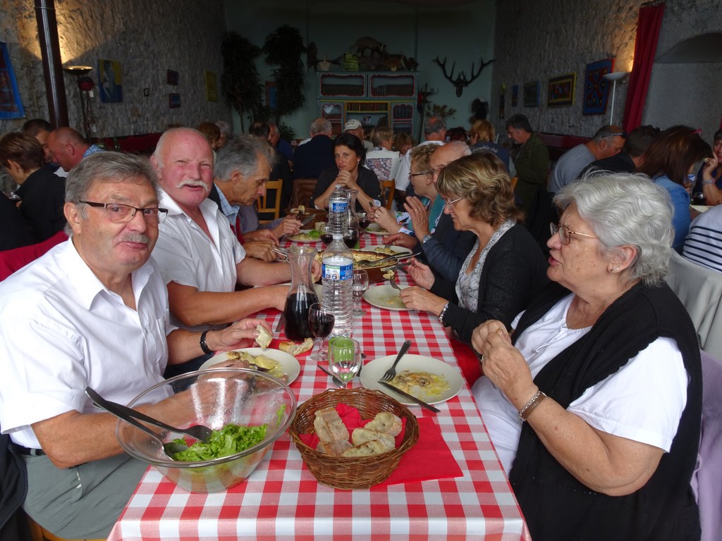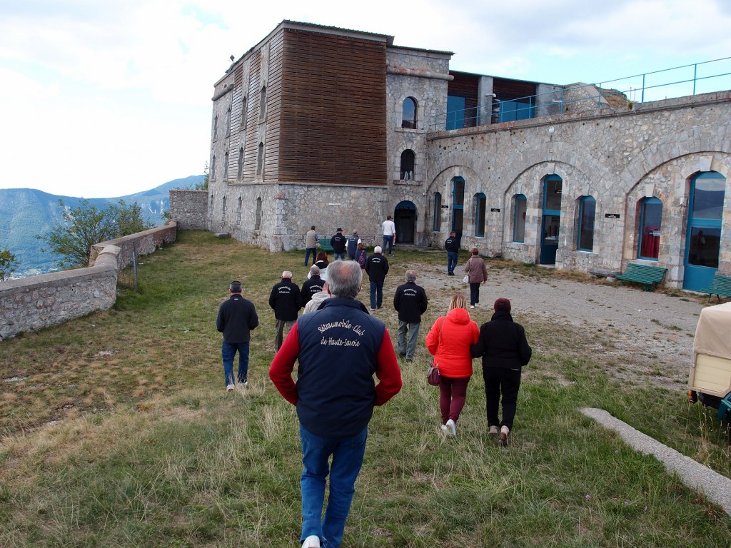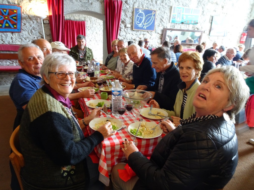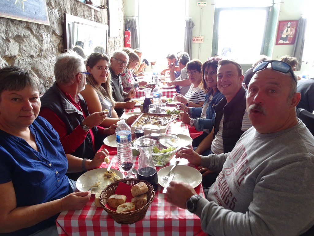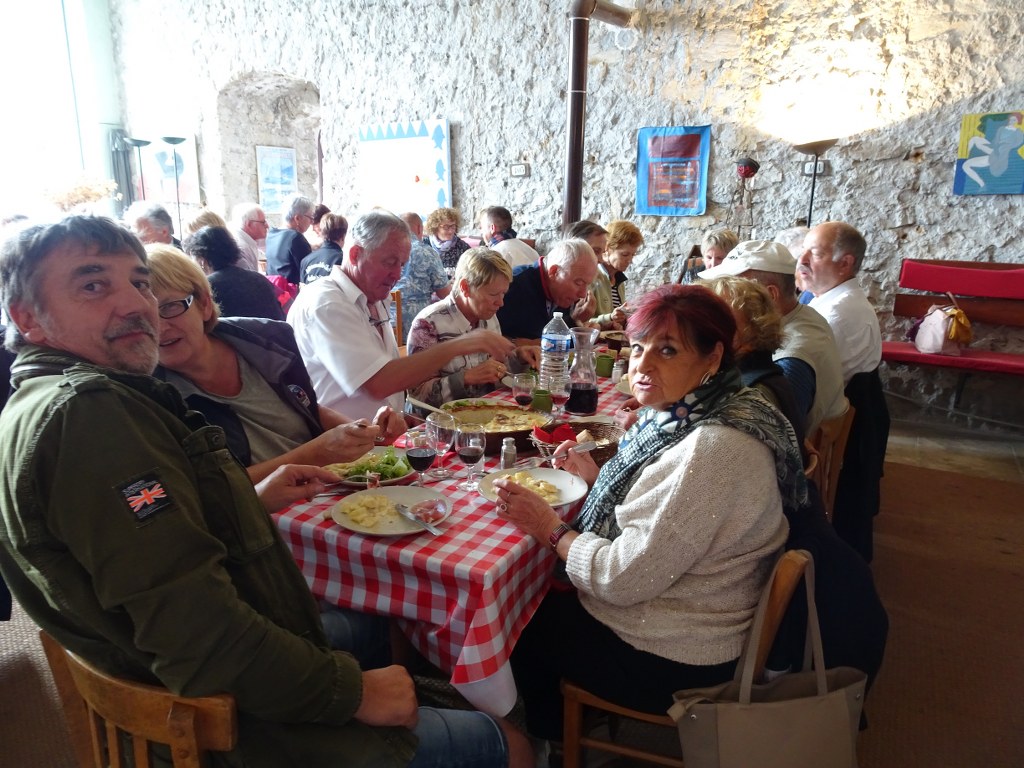 Au fort, stationnement des voitures dans la cour, puis apéritif et repas rustique : charcuterie et un bon gratin. Dauphinois, évidemment !