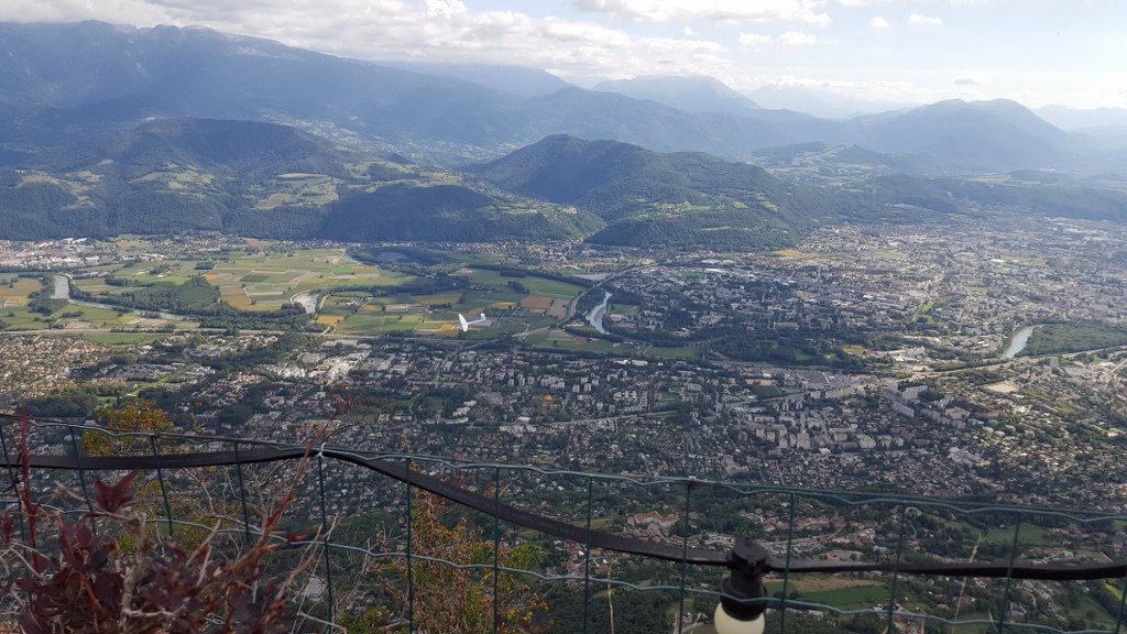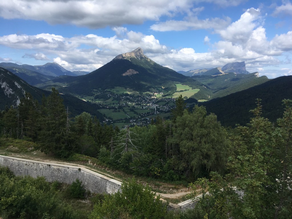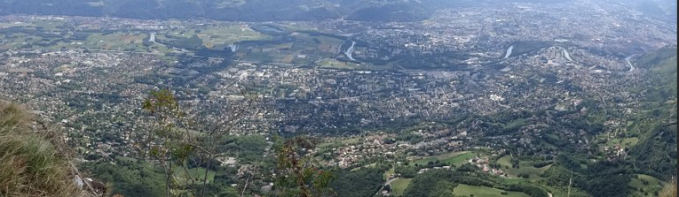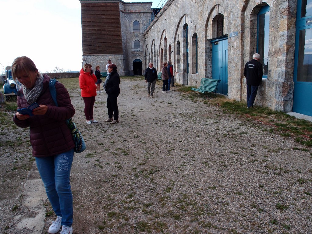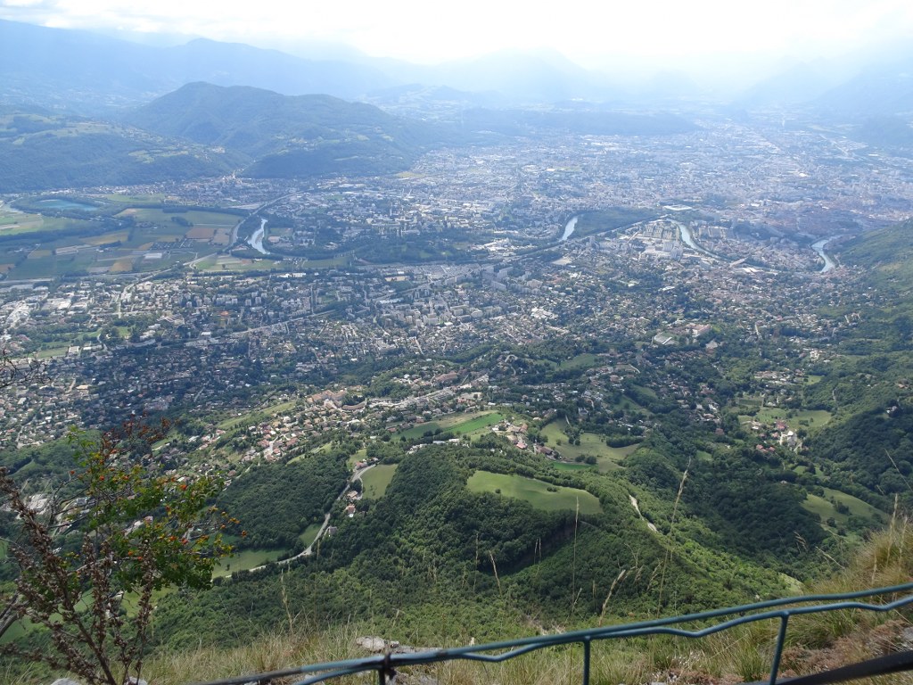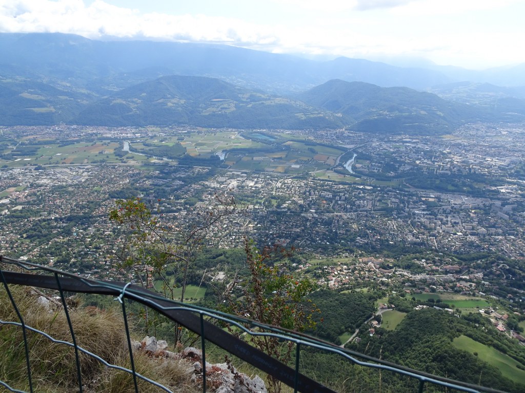 Ensuite, nous avons droit à la visite guidée du fort, en deux groupes. Le site est extraordinaire, avec une vue impressionnante à 360° : toute la ville de Grenoble est à nos pieds, traversée par l'Isère sinueuse, le Massif de Belledone à gauche et le Vercors en face, avec un à-pic de plusieurs centaines de mètres sous nos yeux.
