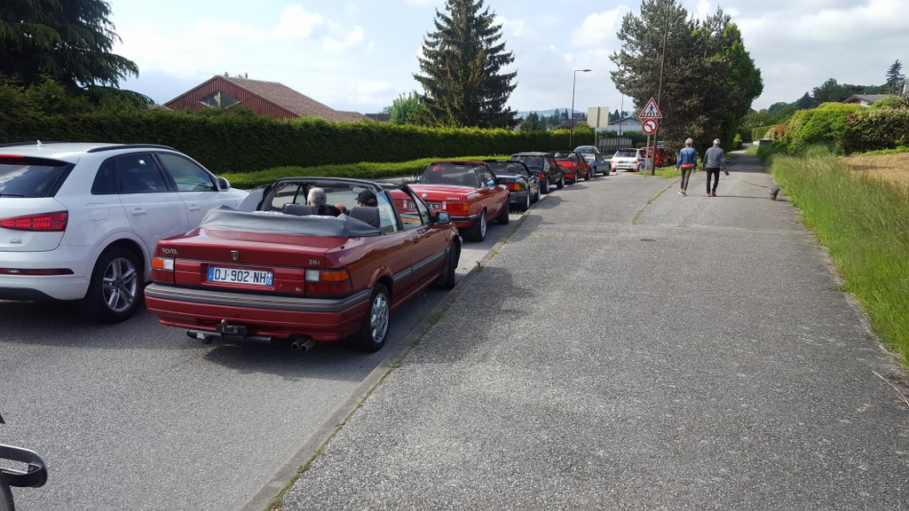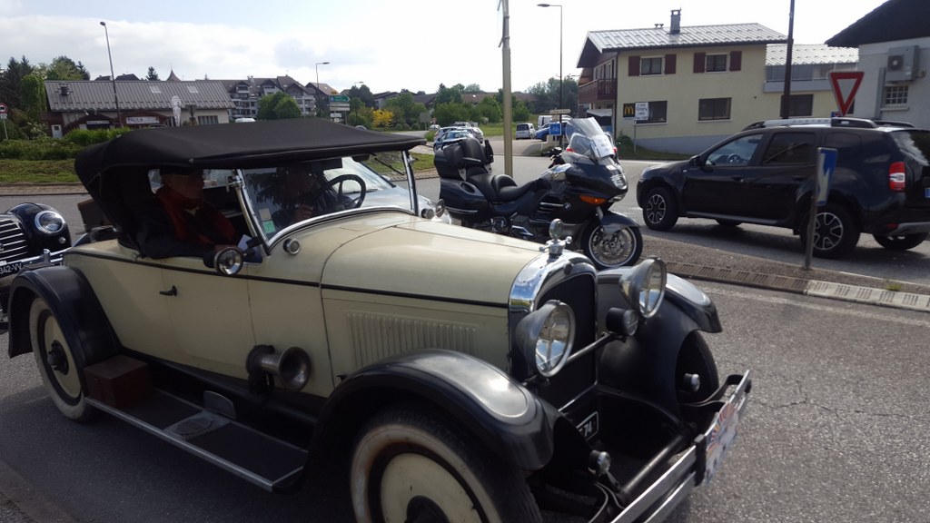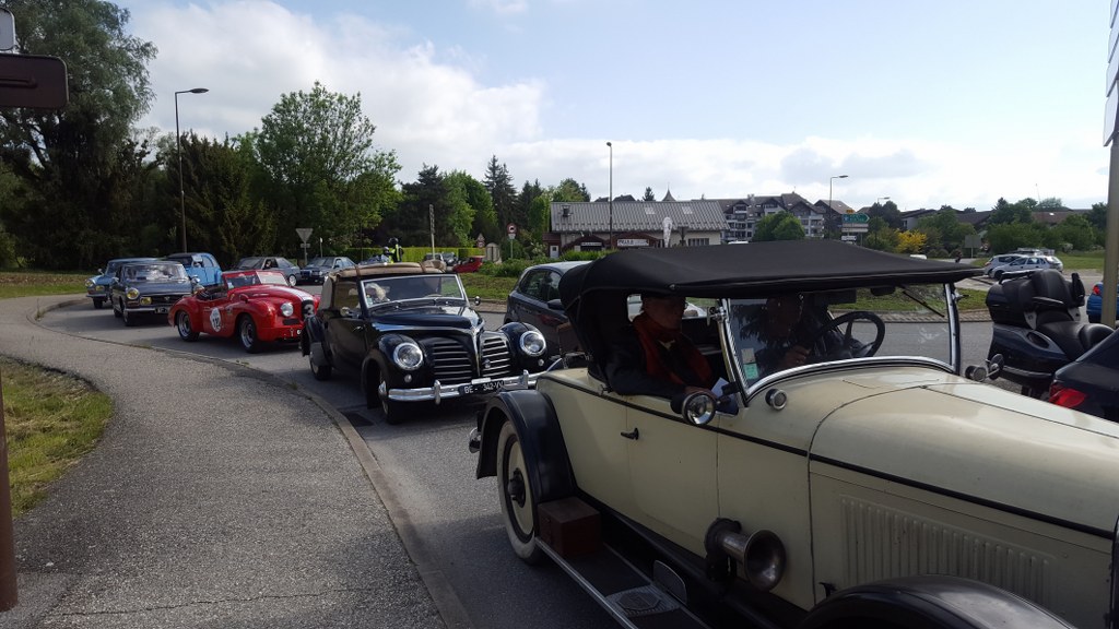 Vers 9h30, départ pour une balade de 2 heures dans les petites routes de la région. Une organisation parfaite, avec des motards pour nous guider, et faire la circulation, un vrai régal. Pas loin de 80 véhicules ont participé à cette balade.