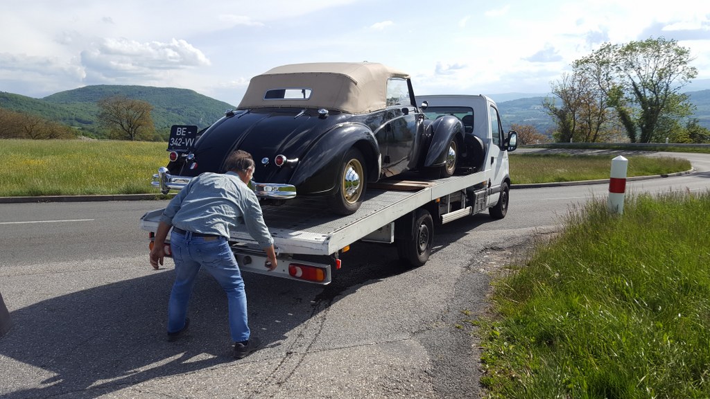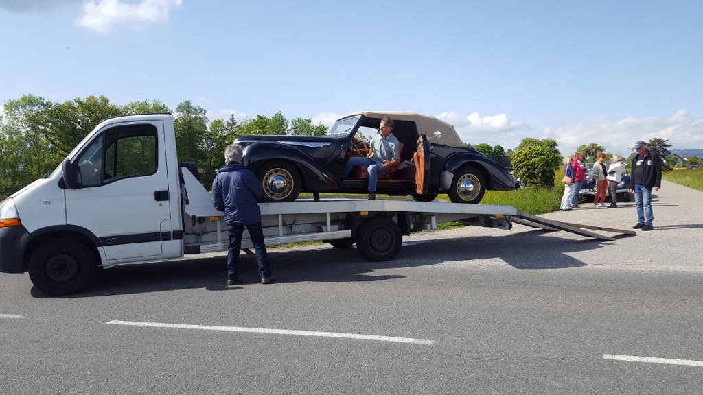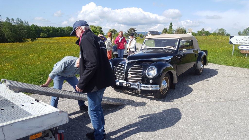 Au moment du départ, un de nos membres a eu un souci au démarrage de son avant-guerre : la solidarité a bien joué et Rémi Simond est arrivé très rapidement avec son camion-plateau, merci à lui pour sa disponibilité, ainsi qu'au "taxi" - également d'avant-guerre - qui a ramené les infortunés chez eux.