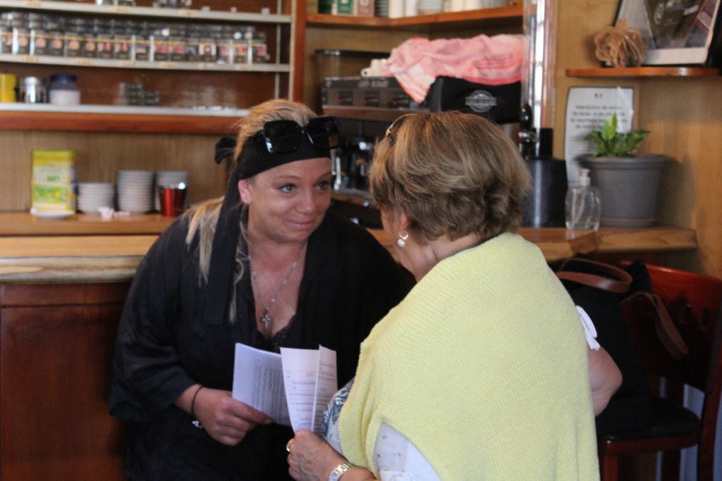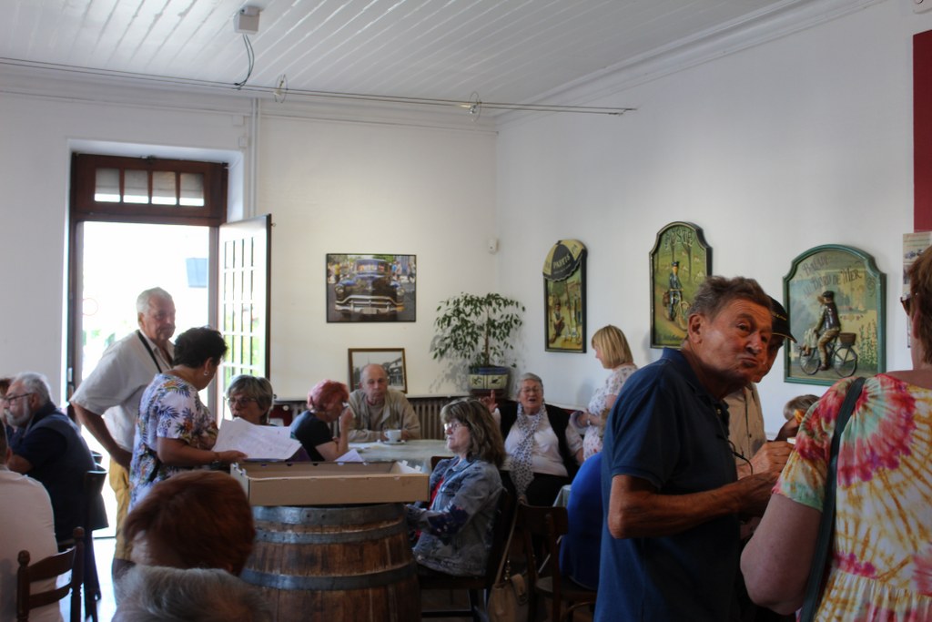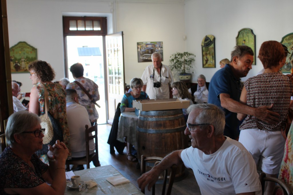 43 participants dégustent leur petit-déjeuner au café Martin de Pontchy et là, premier problème crevaison sur la Traction de Guy !