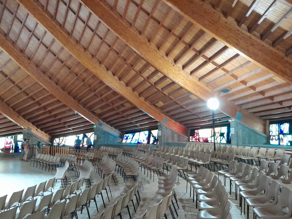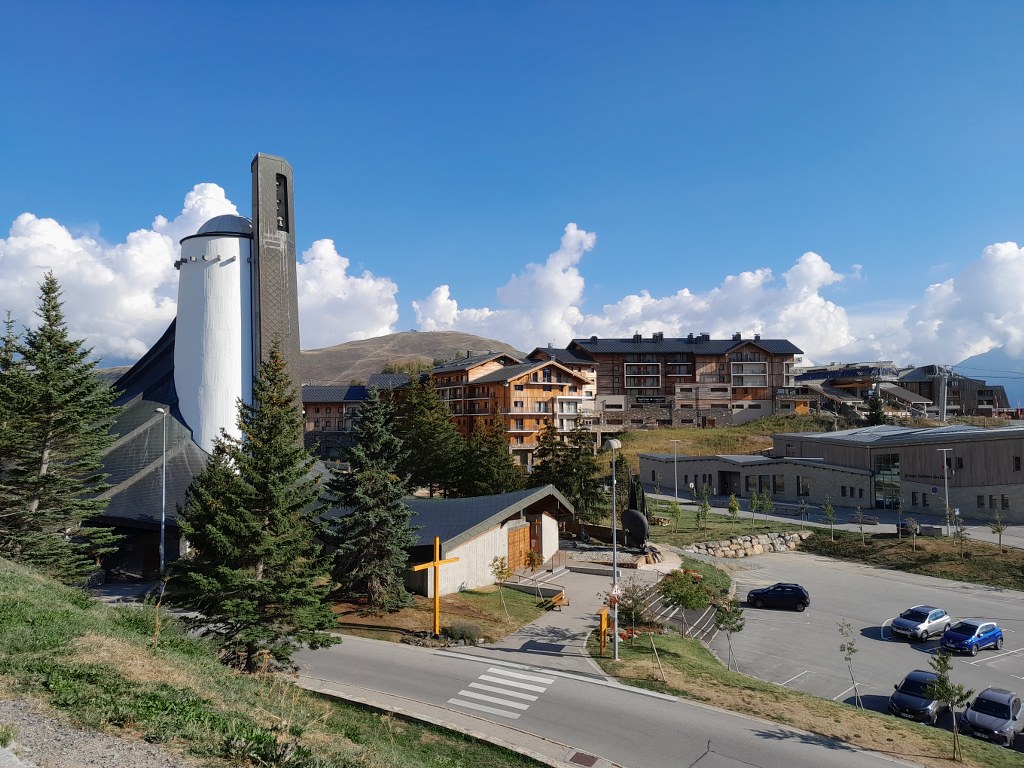 De retour à l'Alpe d'Huez, quartier libre pour visiter la station. On en profite pour découvrir l'église ultra moderne de Notre Dame des Neiges, construite à la fin des années 1960