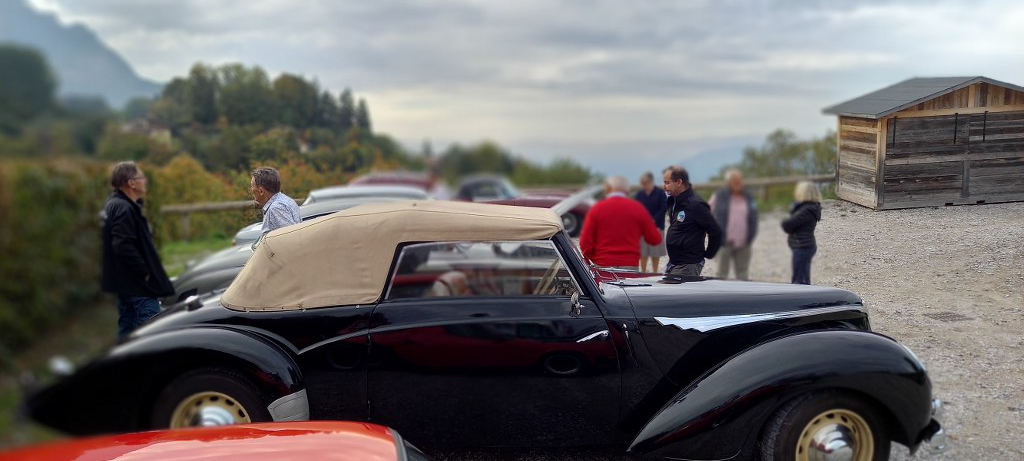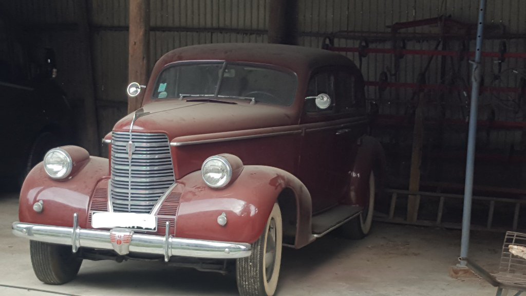 On apprend qu'une auto ancienne est remisée sous abri à quelques mètres du restaurant : certains ne résistent pas à cet appel viscéral et découvrent une belle Oldsmobile 8 cylindres bordeaux des années 40. Il y a 3 mois que le (naïf ?) propriétaire des lieux a accueilli cette auto pour une durée... d'une semaine !