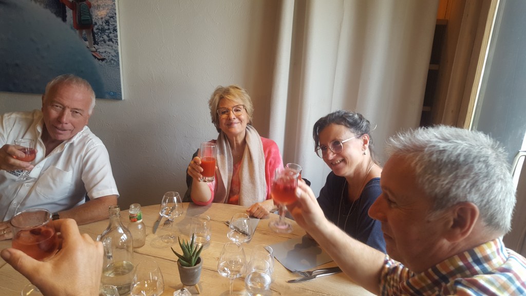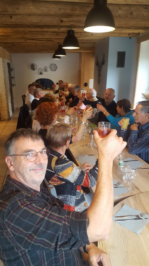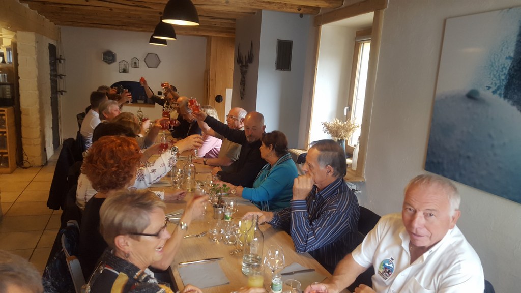 Il reste 1 km pour rejoindre le restaurant "La Grange de Domancy". Apéritif à la framboise, suivi d'un excellent repas, très original et bien cuisiné.