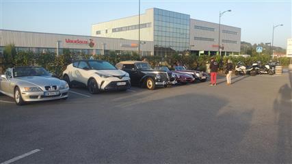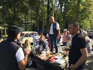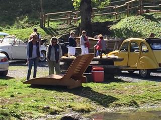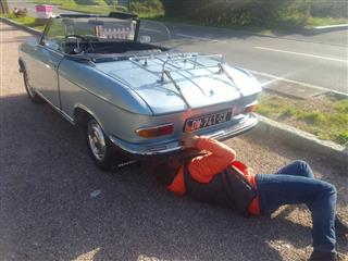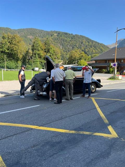 Après le repas, au moment de partir, une voiture fait un caprice et ne veut pas démarrer. Heureusement il y a plein de gens compétents dans le club.