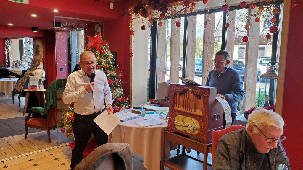 Pour ce repas de fin d'année, Georges Dette et François nous ont organisé une belle journée vers Annecy, à la Balme de Sillingy. Pour animer cette journée, Georges avait apporté son Orgue de Barbarie !
