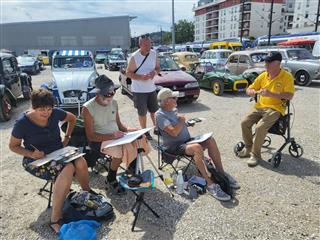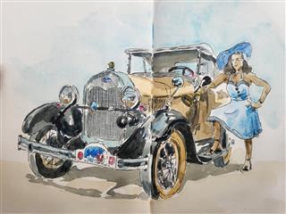 A Rumilly, nous allons à l'exposition organisée par le Club Auto-Retro de l'Albanais. Le samedi, Georges B. y a exposé sa Ford A Roadster 1929 et les peintres se sont mis au travail !