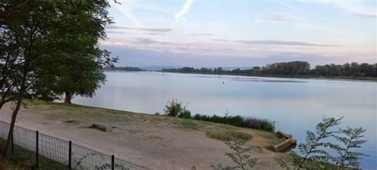 Ensuite direction MEYZIEU à notre hôtel, au bord du Grand Large, lac artificiel alimenté par le Rhône. Magnifique coucher de soleil !