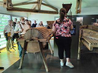 A la fine pluie qui nous accompagne, succédera rapidement le soleil, qui va rendre la route et les paysages, fort agréable. Nous traversons Frangy, Seyssel, Belley, longeons le « Lac Bleu » de Paladru. Nous arrivons a VINAY pour la visite du grand séchoir. Grace à notre guide, Amandine et une vidéo, la culture de la noix n’aura plus de secret pour nous.