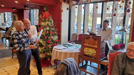 Pour ce repas de fin d'année, Georges Dette et François nous ont organisé une belle journée vers Annecy, à la Balme de Sillingy. Pour animer cette journée, Georges avait apporté son Orgue de Barbarie !