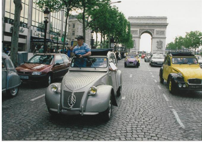 Cette voiture a défilé à Paris lors d'un rassemblement de 2000 2CV