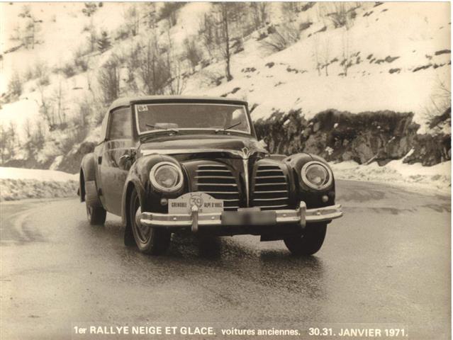 Cette voiture a participé au 1er rallye neige et glace voitures anciennes de l'Alpe-d'Huez les 30 et 31 janvier 1971.